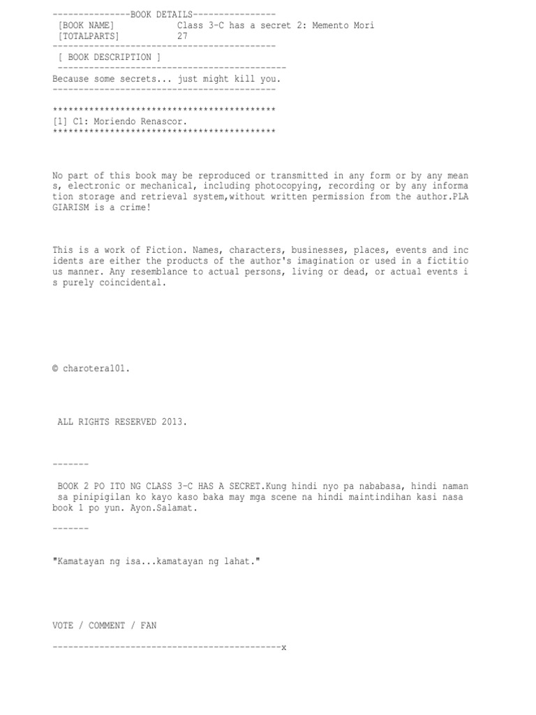 Class 3 C Has A Secret 2 Memento Mori Pdf
